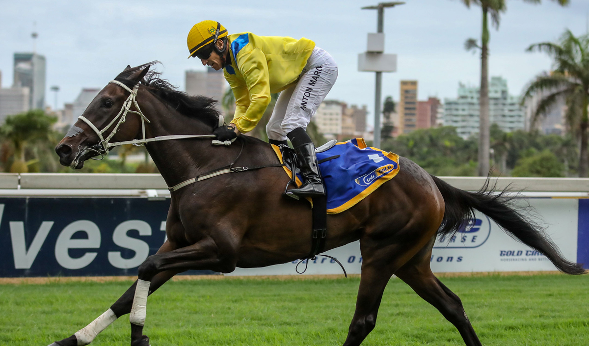 Temple Grafin, winless since The Debutante at the end of last season, opened her seasonal account in the Gr3 Umzimkulu Stakes under another tremendous ride from Anton Marcus. Inching his way into a challenging position from his outside draw, Marcus had Temple Grafin within striking distance coming off the false rail and the filly came forward gallantly to outgun Santa Clara and Silvano’s Pride.