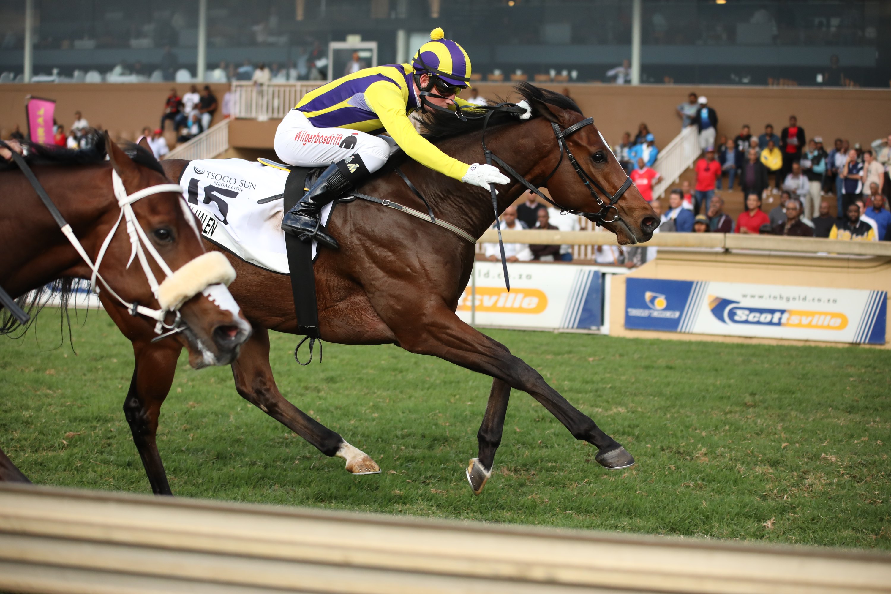 Trained by Dean Kannemeyer on behalf of owners Fieldspring Racing, he scored nine times from two to four and was crowned the country’s Horse of the Year and Champion Classic male at the end of a sophomore season which saw him put together a stellar Gr1 peat of the Cape Derby, SA Guineas, Daily News 2000 and the Vodacom Durban July. In the latter, he jumped from the extreme 20 draw and despite racing wide for some way, produced a powerful finishing burst to win going away.