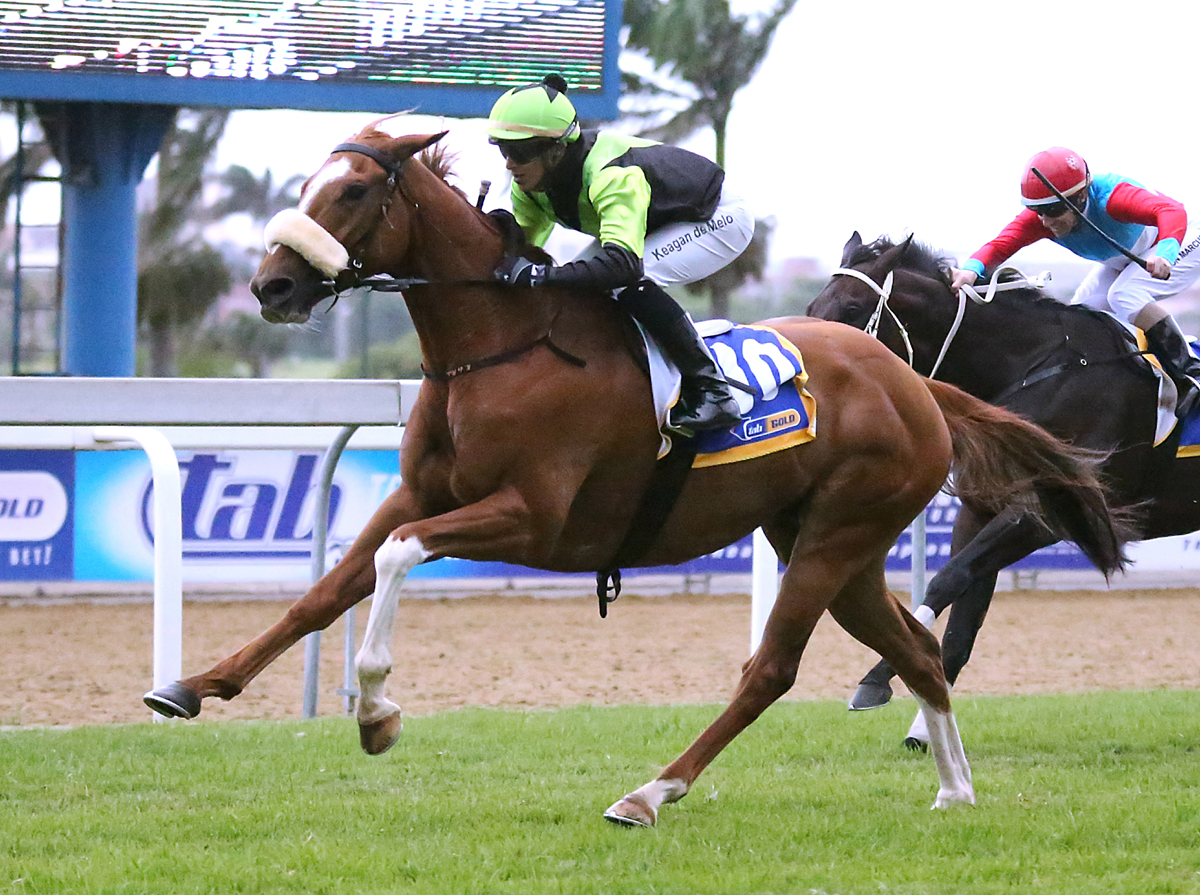 Eric Ngwane, KZN’s leading apprentice for the last two seasons, bounced the filly out smartly and then eased up to make his own pace. With a tail-wind to assist in the straight he kept her going strongly to easily hold top weight Muscat and the grey Isca.