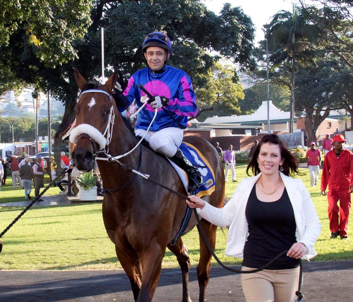Summerveld trainer Lezeanne sent out the Querari gelding Warfarer to win on Sunday at Scottsville and in an emotional moment in the winner’s enclosure jockey Tristan Godden spoke for many when pointing skywards and saying, “This one is for Alec.”