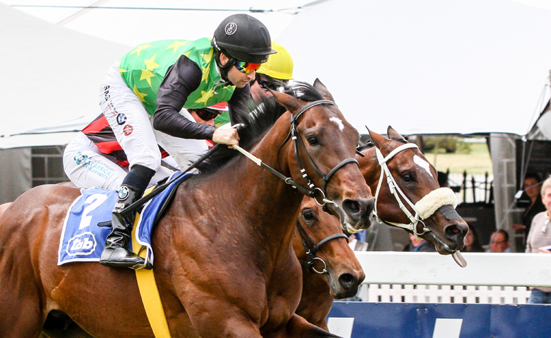 Braam van Huysteen’s Felicity Flyer booked her Choice Carriers Championship ticket when running on resolutely for Aldo Domeyer to get up 50m out in the Place Your Bets Novice Plate.